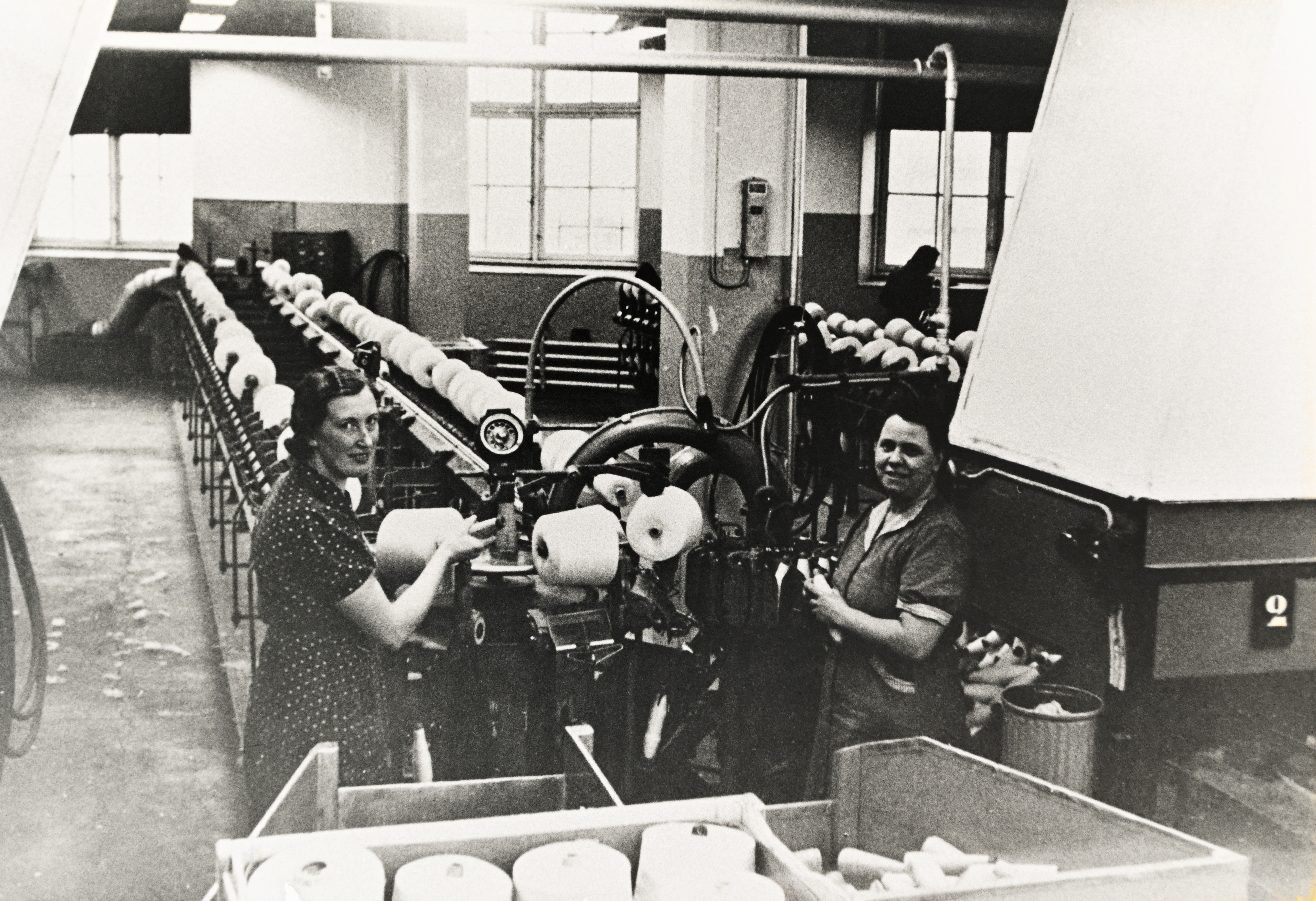 Alva (till höger) arbetar i Strykjärnet - årtal och fotograf okänd.